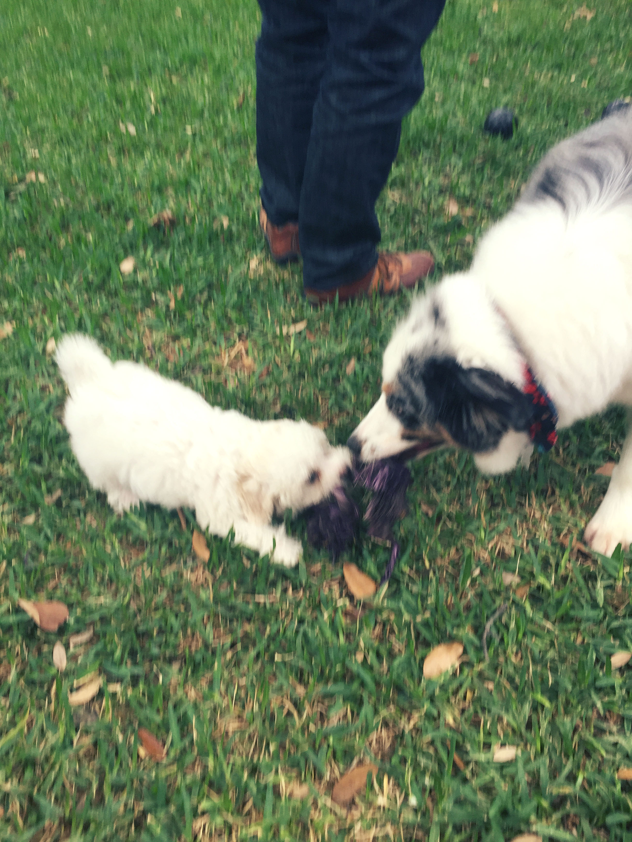 Above: Molly playing tug with Rainey.